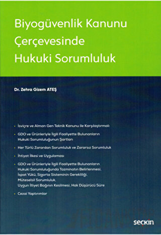 Bu eserde 26.09.2010 tarihinde yürürlüğe giren 5977 sayılı Biyogüvenlik Kanunu md. 14 uyarınca, genetiği değiştirilmiş organizma ve ürünleriyle ilgili faaliyette bulunanların hukuki sorumluluğu, İsviçre ve Alman Gen Teknik Kanunları ile karşılaştırmalı olarak ele alınmaktadır. AB uyum yasaları kapsamında ihdas edilen Biyogüvenlik Kanunu, Cartagena Biyogüvenlik Protokolü'nde yer alan ihtiyat ilkesine dayanmaktadır. İlkenin AB hukukundaki yeri ve bazı ülke mevzuatlarında biyogüvenlik kavramının gelişimi, biyogüvenlik alanındaki yasal düzenlemeler incelenmiştir. Biyogüvenlik kavramının ülkemizde gelişimi, Biyogüvenlik Kanunu ihdas edilmeden önce ülkemizde yer alan yasal düzenlemeler belirtilmiştir.