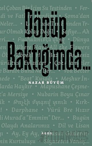 Kültür dünyamızın önemli isimlerinden Nazar Büyüm’ün Nisan 2014’te başlattığı, Aralık 2015’te ara verdiği Agos yazıları, Dönüp Baktığımda başlığını taşıyor. Büyüm’ün hayatına dönüp baktığı bu yazılar, bir yandan kendisinin 1960’ların başlarından itibaren merkez noktalarında yer aldığı kültür, sanat, edebiyat ve yayıncılık dünyasından eşi bulunmaz tanıklıklar, portreler, galeriler sunuyor, bir yandan da Kayseri-Develi’de başlayan, İstanbul’da süren bu hayatın bir Ermeni gencinde, bir Ermeni ailesinde bıraktığı izleri, öğretici, aydınlatıcı satırlarla canlandırıyor.