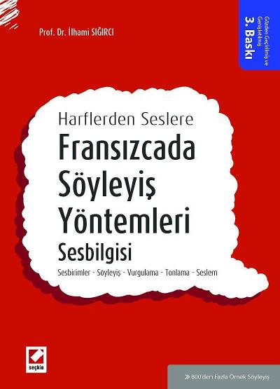 Uzun süre, yurt dışında yürüttüğü çalışmalarını Türkiye’de devam ettiren ve yıllardan beri çeşitli üniversitelerde “phonétique - sesbiligisi” ve “phonologie - sesbilim” dersleri veren, Fransızcanın nasıl söylenmesi gerektiğiyle ilgili ayrıntılı çalışmalar yapan yazarın kaleme aldığı kitap, gözden geçirilmiş ve genişletilmiş 3. baskısını yapmıştır. Kitabın ilk iki baskısının ardından gerek akademisyenlerden ve öğrencilerden gerekse kitabı kullanan okuyuculardan gelen istek ve öneriler de dikkate alınarak, kitabın daha kullanıcı dostu olması sağlanmıştır. Bu çalışma ile Fransızcada harflerin nasıl telaffuz edileceği, özellikle de hangi harflerin hangi sesleri verdiği açıklanan 800’den fazla örnekle öğrenilebilir, eğer söyleyiş yanlışlarınız varsa bunları düzeltme yöntemlerini öğrenebilirsiniz. Bunun dışında, seslemi, seslemlere ayırmayı, cümlede vurgulamayı, vurgulama çeşitlerini, tonlamanın nasıl yapıldığını da öğrenebilirsiniz. Kısacası bu kitap, Fransızca kelimelerin söyleyişinde güçlük çekenlere ve söyleyişi öğrenmek isteyenlere rehber bir kitap olacaktır.