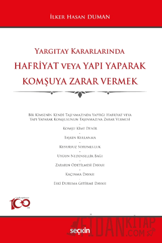 Malik, kazı ve yapı yaparken komşu taşınmazlara, onların topraklarını sarsmak veya tehlikeye düşürmek ya da üzerlerindeki tesisleri etkilemek yoluyla zarar vermekten kaçınmak zorundadır. Kazı ve yapılarda uyulması gerekli kurallar özel yasalarla belirlenir. Kazı ve yapı sahibi zararın artmaması için gerekli önlemleri almak zorundadır. Arsa sahipleri durumu kusursuz sorumluluk esaslarına dayandığından onların tazminat sorumluluğu kusurları ölçüsünde değil, zarara neden olma ölçüsündedir; yüklenicinin sorumluluğu ise eylemdeki kusur ölçüsü ile sınırlıdır. Yüklenicinin sorumluluğu kusura dayanır; kusuru varsa sorumlu olacaktır. Örneğin yüklenici, yapıyı yaparken, zeminin mukavemet gücüne göre gerekli fenni tedbiri alacaktır. Arsa sahibi ile yüklenici arasında yapılmış sözleşme arsa sahibini dışa ve üçüncü kişilere karşı yükümlülükten kurtarmaz. Üçüncü kişiler doğan tazminat alacaklarını her iki taraftan ayrı ayrı isteyebilirler. Kitap tüm bu hususları ince noktaları ve örnek kararlar ile incelemektedir.