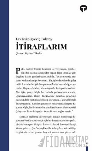 İtiraflarım’ın her bir satırında Tolstoy’un iç dünyasına yaptığı yolculuğa şahit oluyorsunuz.