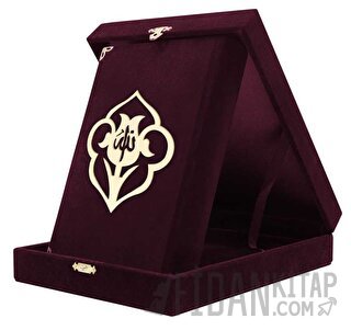 Kadife Kutulu Kur'an-ı Kerim (Hafız Boy, Güllü, Bordo)