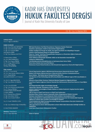 Dergimizin bu sayısında Kamu Hukuku alanında takdirlerinize sunduğumuz çalışmalarımız; Dr. Öğr. Üyesi Fethullah BAYRAKTAR'ın 1950'den bugüne dek toplanan Birleşmiş Milletler Genel Kurulu Acil Özel Oturumlarını inceleyerek bu uygulamanın hukuki zeminini ve sonuçlarını tartıştığı "BM Genel Kurulunun ‘Acil Özel Oturumlarının' Kapsamını Yeniden Düşünmek" başlıklı makalesinden, Dr. Öğr. Üyesi Dilara Buket DİDİN'in kazandırıcı zamanaşımı kurumunun meşruiyetini felsefi ve ekonomik temelleri bakımından değerlendirdiği "Kazandırıcı Zamanaşımı: Felsefi ve Ekonomik Bir Değerlendirme" adlı çalışmasından, Dr. Öğr. Üyesi Seda DUNBAY'ın geçmişten günümüze Fransız laikliğinin hukuki panoramasını göz önüne serdiği "Analyse Juridique du Principe de Laïcité, une Valeur Essen tielle de la République Française" isimli eserinden, Arif Doğuhan ERKİN'in ötanazi ve ölme hakkına ilişkin tartışmalarla birlikte pediatrik ötanazinin hukuki ve etik boyutlarını değerlendirdiği "Hukuki ve Etik Boyutuyla Ötanazi ve Pediatrik Ötanazi" başlıklı makalesinden, Dr. Öğr. Üyesi Mehmet Akif ETGÜ'nün Platon'un siyasal düşünce tarihinin temel kaynaklarından biri olan "Devlet" adlı eserin de eğitim üzerine görüşlerini incelediği "Platon'un "Devlet" İsimli Eseri Perspektifinden Savaşçıların ve Yöneticilerin Eğitimi Hakkındaki Düşüncelerinin Değerlendirilmesi" başlıklı eserinden, Dr. Remzi Orkun GÜNER'in insan haklarının toplumsal boyutunu antropoloji ve hak siyasetinin karşılaşmaları üzerinden incelediği "İnsan Haklarına Antropolojik Yönelimler: Kültür ve Hak Kavramları Arasındaki İlişki" başlıklı makalesinden, Arş. Gör. Bilal OSMANOĞLU'nun madde kullanım bozukluğu olan kişileri tedaviye yönlendiren ve bu tedaviyi yargısal olarak izleyen alternatif bir model olarak uyuşturucu mahkemelerini açıkladığı "Uyuşturucu Mahkemeleri" isimli çalışmasından, Dr. Öğr. Üyesi Yaprak ÖNTAN'ın bağlantılı ceza muhakemeleri söz konusu olduğunda başvurulan ceza muhakemelerinin birleştirilmesi kurumunu ve birleştirilen muhakemelerin ayrılmasını yargı kararları eşliğinde değerlendirdiği "Ceza Muhakemelerinin Birleştirilmesine ve Ayrılmasına Karar Verme Yetkisi" isimli çalışmasından, Doç. Dr. Duygu ÖZER SARITAŞ'ın Roma döneminde önemli bir hukuki statüye sahip olan konsüllük makamını incelediği "Roma Kamu Hukuku'nda Consul'lük Makamı" isimli makalesinden, Doç. Dr. Yeter TABUR ve Yrd. Doç. Dr. Erdi ŞAFAK'ın uluslararası insancıl hukuk kuralları çerçevesinde sınır ötesi afet yardımı ve iyileştirme konusundaki mevcut uluslararası yasaların ana hatlarını çizdikleri ve uluslararası operasyonlarda ortaya çıkan en yaygın sorunları tartıştıkları "Uluslararası İnsancıl Hukuk Kurallarının Afet Süreçlerinde Uygulanması Üzerine Bir Değerlendirme" başlıklı makalelerin den oluşmaktadır.