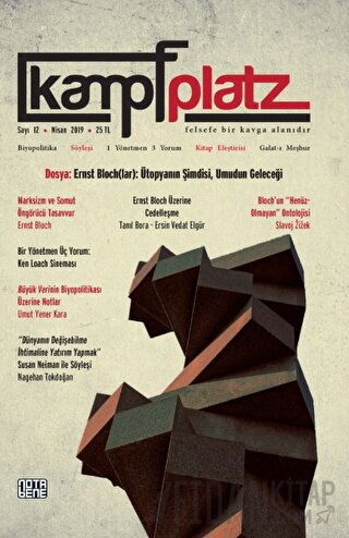 Felsefenin, kuramsal zeminde bir “kavga alanı” olduğu düşüncesinden yola çıkan ve sosyal bilimlerin farklı alanlarına kendini açan kampfplatz, entelektüel tartışma ufkunun genişlemesinde önemli bir kavşak noktası olarak on bir sayıyı geride bıraktı. kampfplatz, polemik kültürünün ufuk açıcı geleneğinin akademik alanda da sürdürülmesinin önemine inanarak, hakemli dergi formatında ve her sayıda bir dosya konusuyla kaldığı yerden yoluna devam ediyor. Dergi 12. sayısında, geri planda kalmış önemli bir düşünür olan Ernst Bloch’u ağırlıyor.
