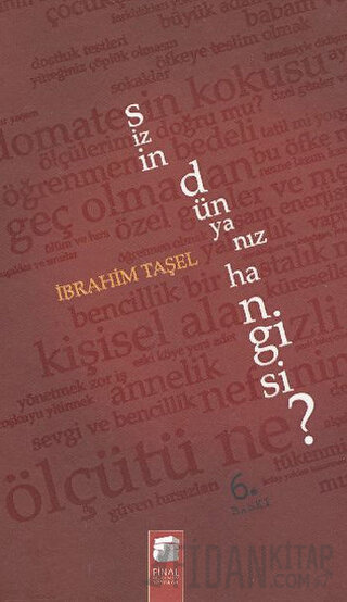 Eğitimci ve iş adamı İbrahim Taşel içinde yaşadığımız dünyaya ve her biri birer dünya olan insanlara yaklaşımını bu cümlelerle özetliyor. Okuyucuyla buluşan ilk kitabı "Sizin Dünyanız Hangisi " yazarın yaşama ve insana odaklandığı deneme türündeki elli beş yazısını içeriyor. Kitaba adını veren soruyla başlıyor yazar. Kendi yaşam süzgecinden emeğin ve bilginin eleğinden geçirdiği paylaşımlarını içtenlik ve açıklıkla ortaya koyuyor. "Sizin Dünyanız Hangisi " yaşadığımız dünyaya görünmez ipliklerle bağlı olduğumuz insanlara yeniden bakmayı anımsatıyor biz okuyucularına ve bu keyifli okuma sona erdiğinde nihayet kendimize yüreğimizdeki aynaya döndürüyor yüzümüzü.