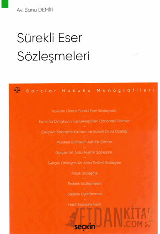 Sürekli eser sözleşmeleri ile hem günlük hayatta hem de ticari hayatta sıklıkla karşılaşılmaktadır. Sürekli bir ilişki içerisinde ifa edilen bakım onarım sözleşmeleri, ara malzeme üretimine ilişkin sözleşmeler konu dahilindedir. Eser sözleşmesinin unsurlarını taşıyan, ani ifalı münferit edimlerin, bir çerçeve sözleşme dahilinde sürekli bir borç ilişkisi oluşturdukları sürekli eser sözleşmeleri elbette bunlarla sınırlı değildir. Çalışmada sürekli eser sözleşmelerinin farklı uygulamaları örnekleriyle anlatılmıştır.